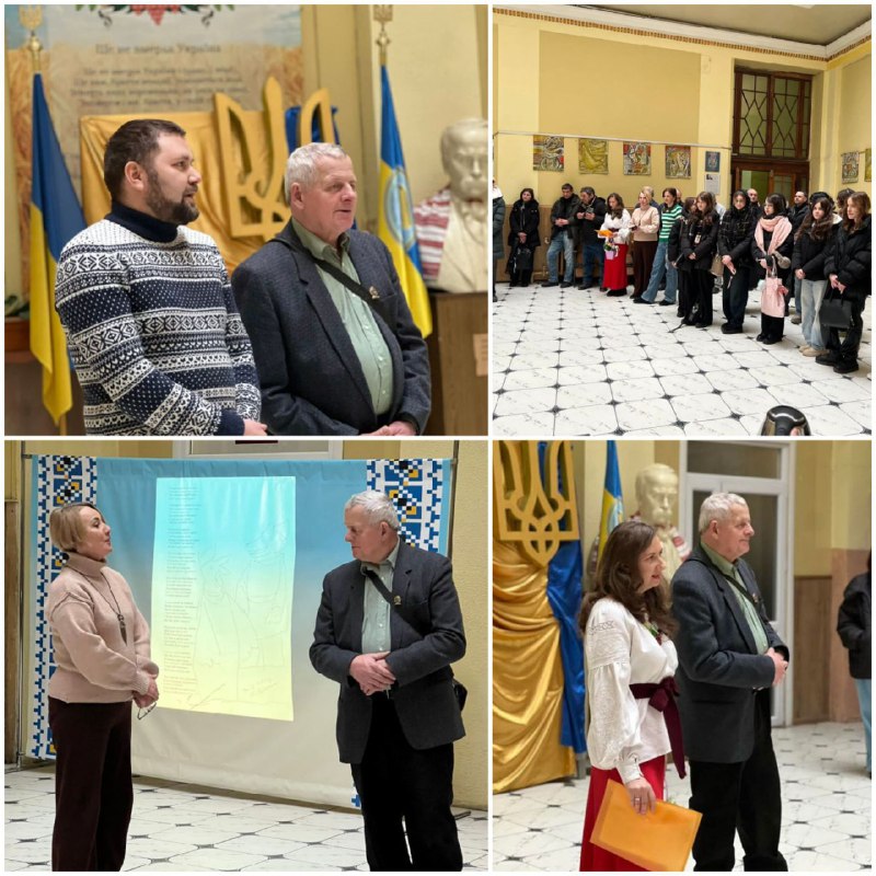 відомий художник Орест БІЛОУС привітав Василя Івановича з відкриттям виставки і наголосив здобувачам освіти про те, що вони мають щастя вчитись у такого видатного художника;
