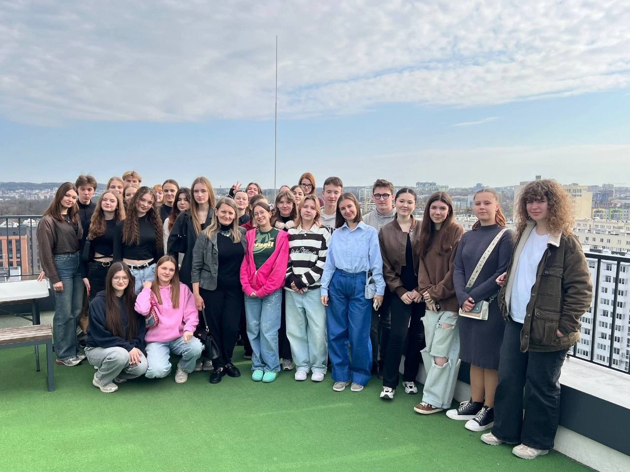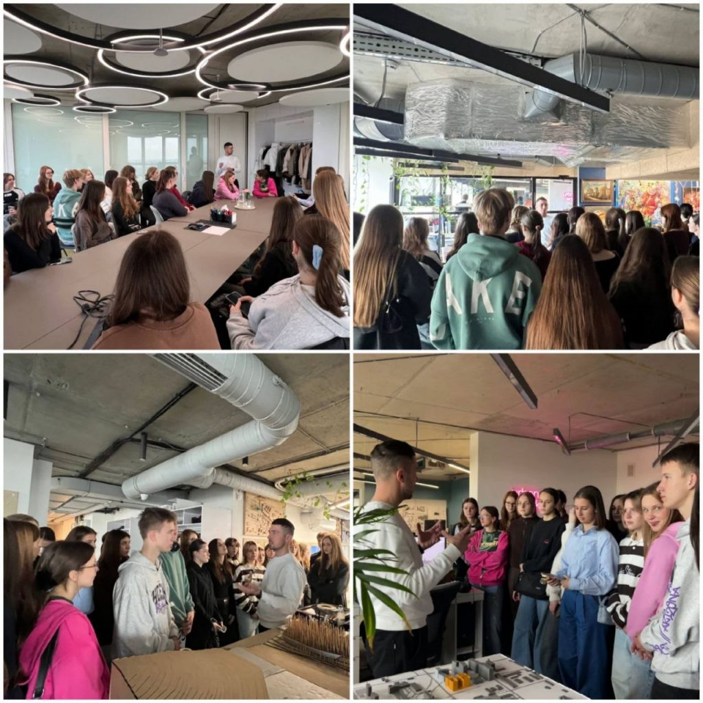 Розпочали з екскурсії офісом, яку провів головний архітектор проєктів Євген Доля. У конференц-залі здобувачів освіти зустрів контент-директор Богдан Думіч, який ознайомив із компанією та архітектурою загалом, занурив студентів в обраний ними фах. СЕО компанії Юліан Чаплінський по-простому розповів про труднощі в роботі архітектора. Далі відвідали останній експлуатований відкритий 17-ий поверх будівлі.