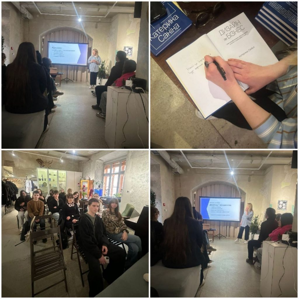 Гості побували на лекції та презентації книги «Дизайн як бізнес» дизайнерки інтерʼєрів, засновниці спільноти професійних дизайнерів DAH Катерини Саніної.