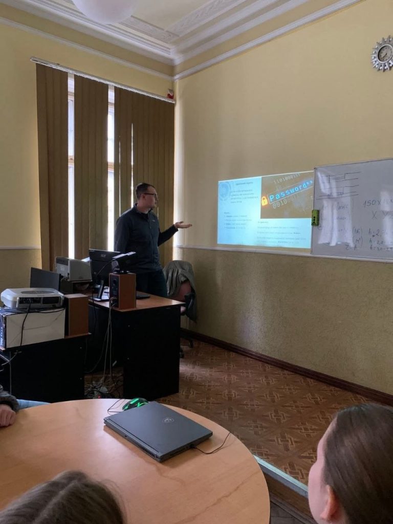Педагог ознайомив студентів з актуальними загрозами в онлайн-просторі та акцентував увагу на важливості захисту персональних даних, безпечного користування соціальними мережами.
