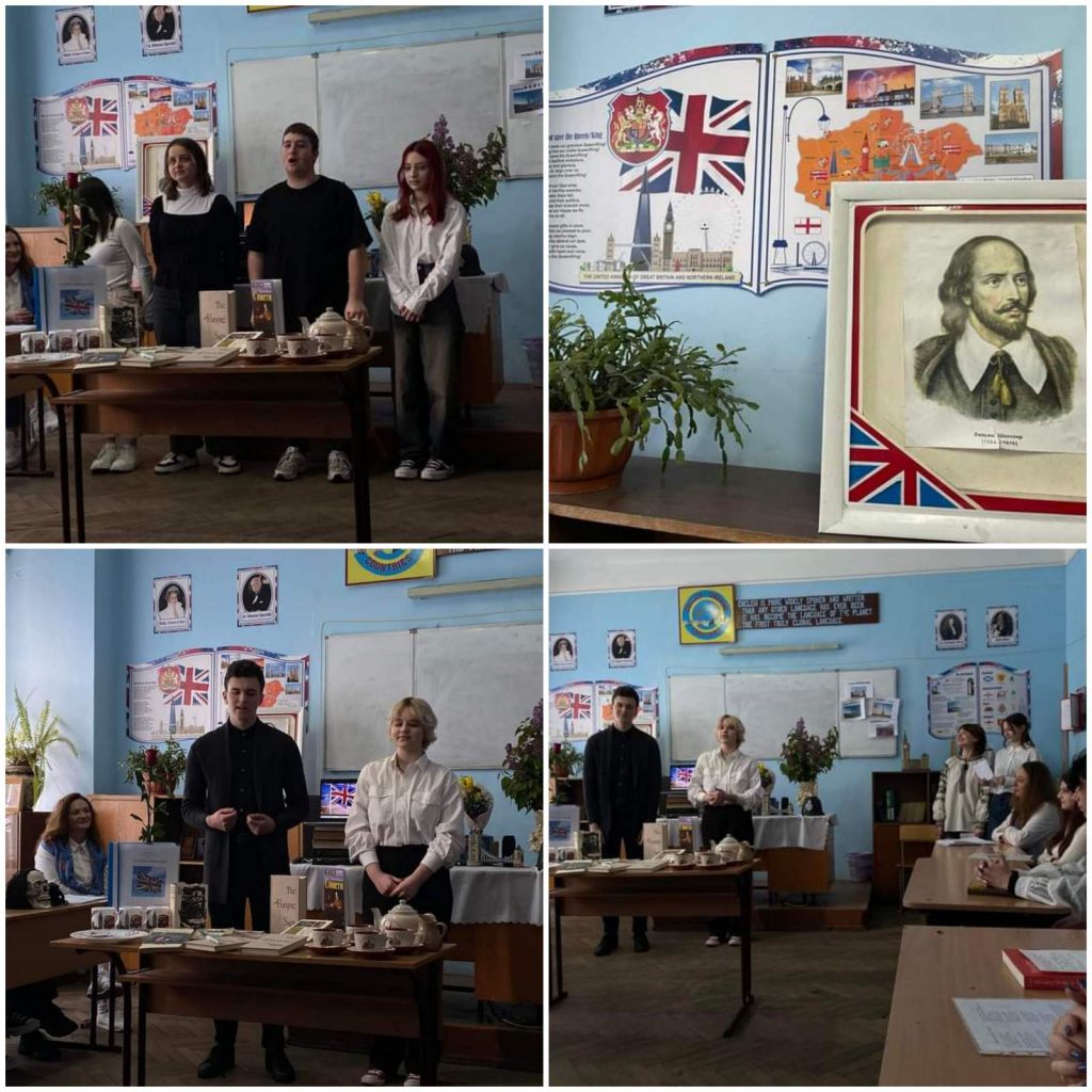 На гостинах здобувачі освіти декламували сонети В. Шекспіра, вірші Р. Бернса, Р. Кіплінга, Д. Г. Байрона англійською та їхні переклади українською. Вдало та майстерно інсценізували сценки з творів «Король Лір» та «Ромео і Джульєтта». Організатори також підготували цікаву вікторину «Відгадайте англійські крилаті вислови» , де всі охочі могли перекласти їх українською. На заході панувала доброзичлива атмосфера, а студенти та викладачі продемонстрували високий рівень підготовки.